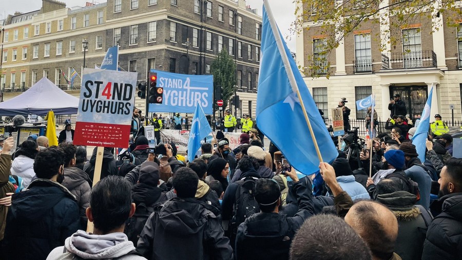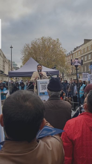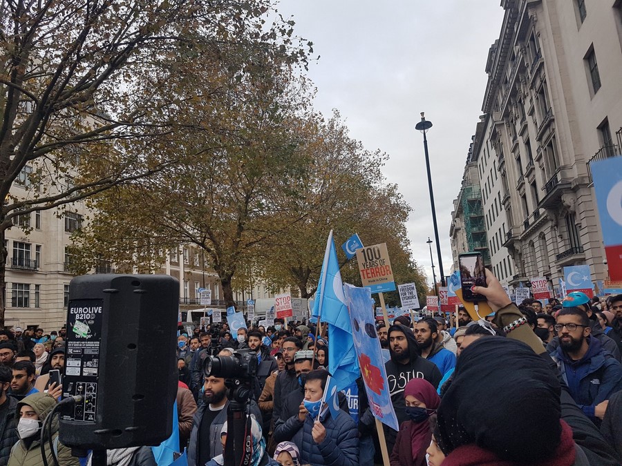 Members of Hizb ut Tahrir/ Britain participated in a stand in support of Uyghur Muslims in front of the Chinese Embassy in London, and the Chinese Consulate in Manchester, on Saturday 13/11/2021. A group of leaders from the Muslim community reminded them that the Muslim Ummah is one and their affliction is one.