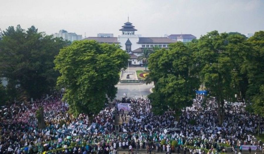 Thousands of Muslims in various Indonesian cities held pro-Palestine rallies on October 18 and 19, 2025, under the slogan "Palestine Remains Under Occupation." In Bandung, more than 15,000 demonstrators gathered in front of the Gedung Sate building, waving banners bearing the Shahada (declaration of faith) and placards with slogans such as "Send the Islamic Armies, Liberate Palestine!", "The Final Solution for Palestine is Through Jihad and the Khilafah," and "With the Khilafah and Jihad, Palestine Will Be Liberated."