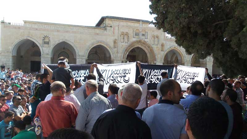 The worshippers chanted slogans against Russia, America and the Assad regime and demanded the support for Aleppo from the Muslim armies of the Ummah. The takbeers and tahleel rang through the Aqsa courtyards raising the banners of the Rayah of Rasul Allah (saw).