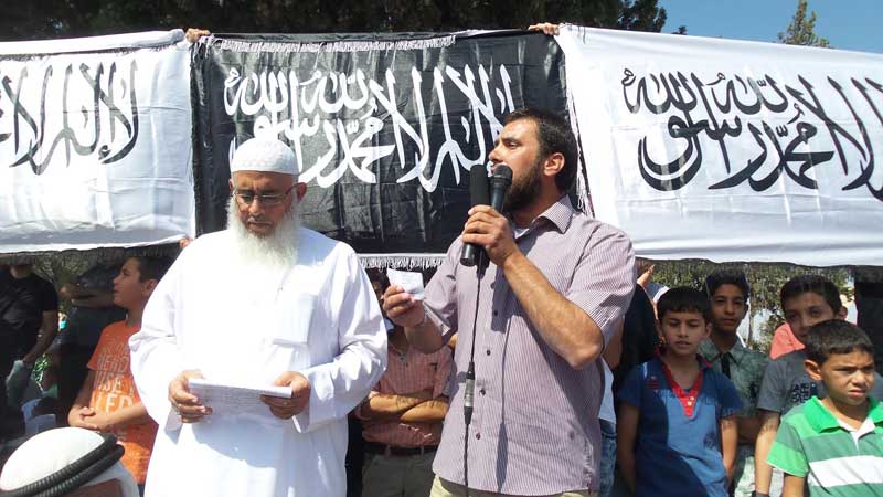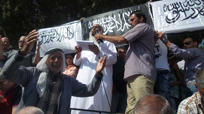 We address you from Bait ul Maqdis ... from the Israa wal Mi’raj of the Messenger of Allah, we call upon you ... and from Al-Aqsa Mosque we cry for your help ... and we say to you: Your way out is by holding on tightly to the Deen of Allah (swt). Only Allah can remove this calamity, it is only Allah who can bring the Victory... Do not turn to the West and its projects ... reject the supporters of Satan and advocates of the gates of hell ... reject all types of agents ... reject all of the Kaffir’s projects with all different backgrounds ... and you have in Palestine and Al-Aqsa Mosque a lesson and example. So hold tight to the firm rope of Allah alone and adhere to the fundamentals of your revolution: to topple the regime, and cut off the head of the snake in Damascus, and liberate from all subordination, and establish the Khilafah "Caliphate" (Caliphate) on the method of Prophethood.”