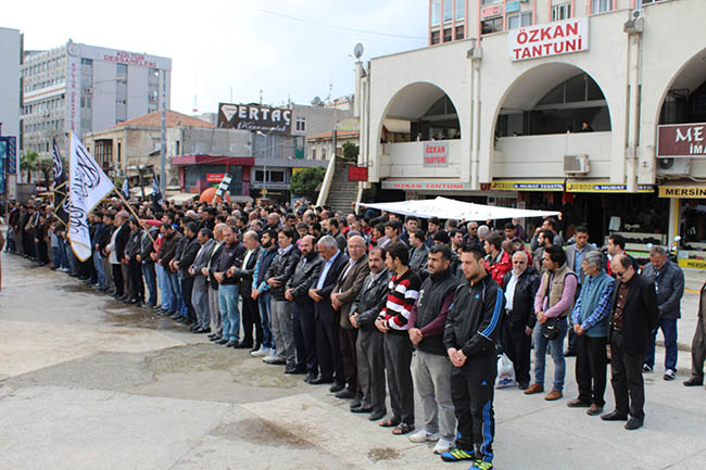 As first after the Friday prayer, a prayer in absentia was held ın remembrance of the martyred brave descents of Syria. After the prayer in absentia, Ebubekir Kösem held a press statement in the name of Köklü Değişim Mersin.